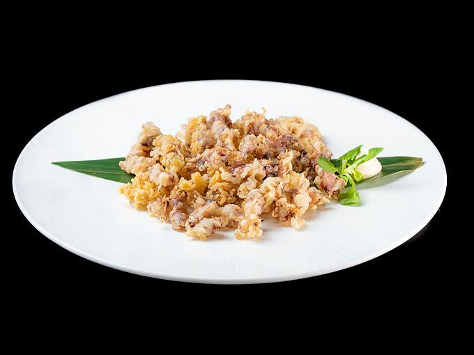 calamari a spillo, maionese, salsa yuzu
