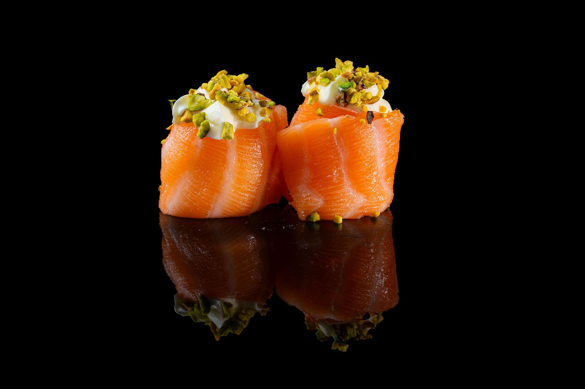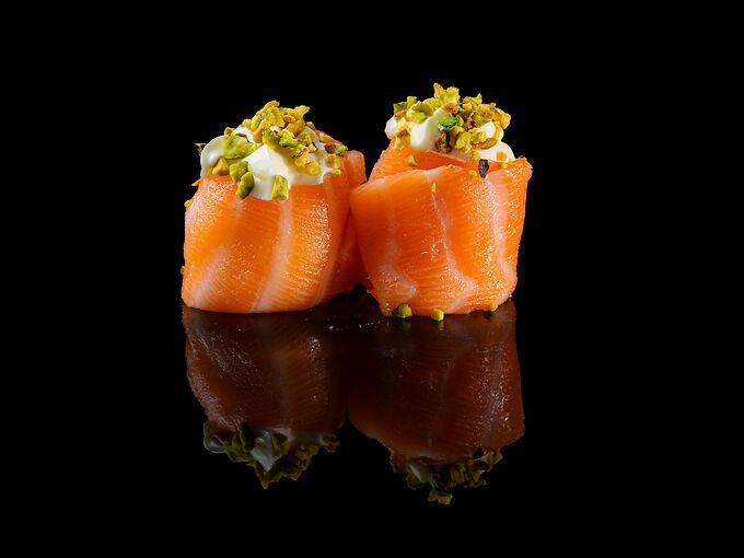 Riso, salmone, philadelphia, pistacchio, pistacchio, salsa teriyaki