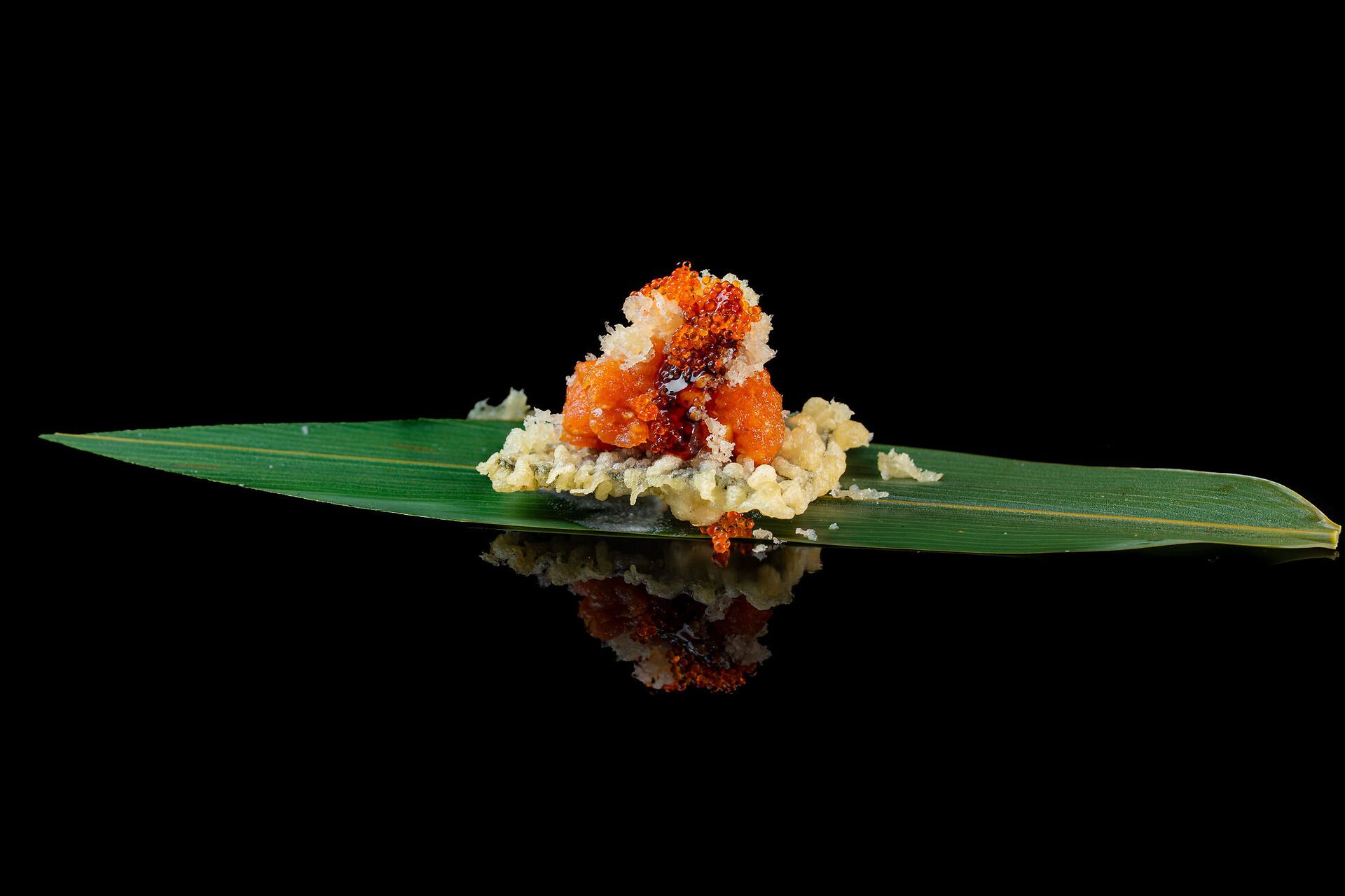 Alga con spicy tonno, philadelphia, tobiko e Tempura