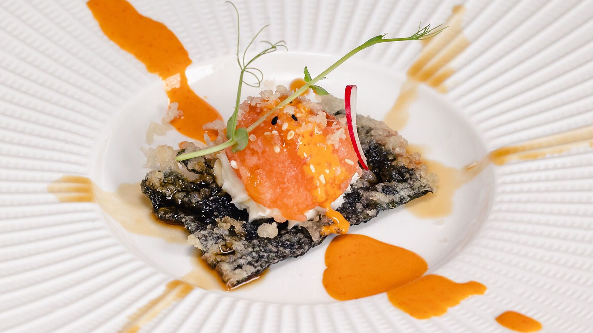 Ingredienti Alga, spicy salmone, philadelphia, tobiko e tempura