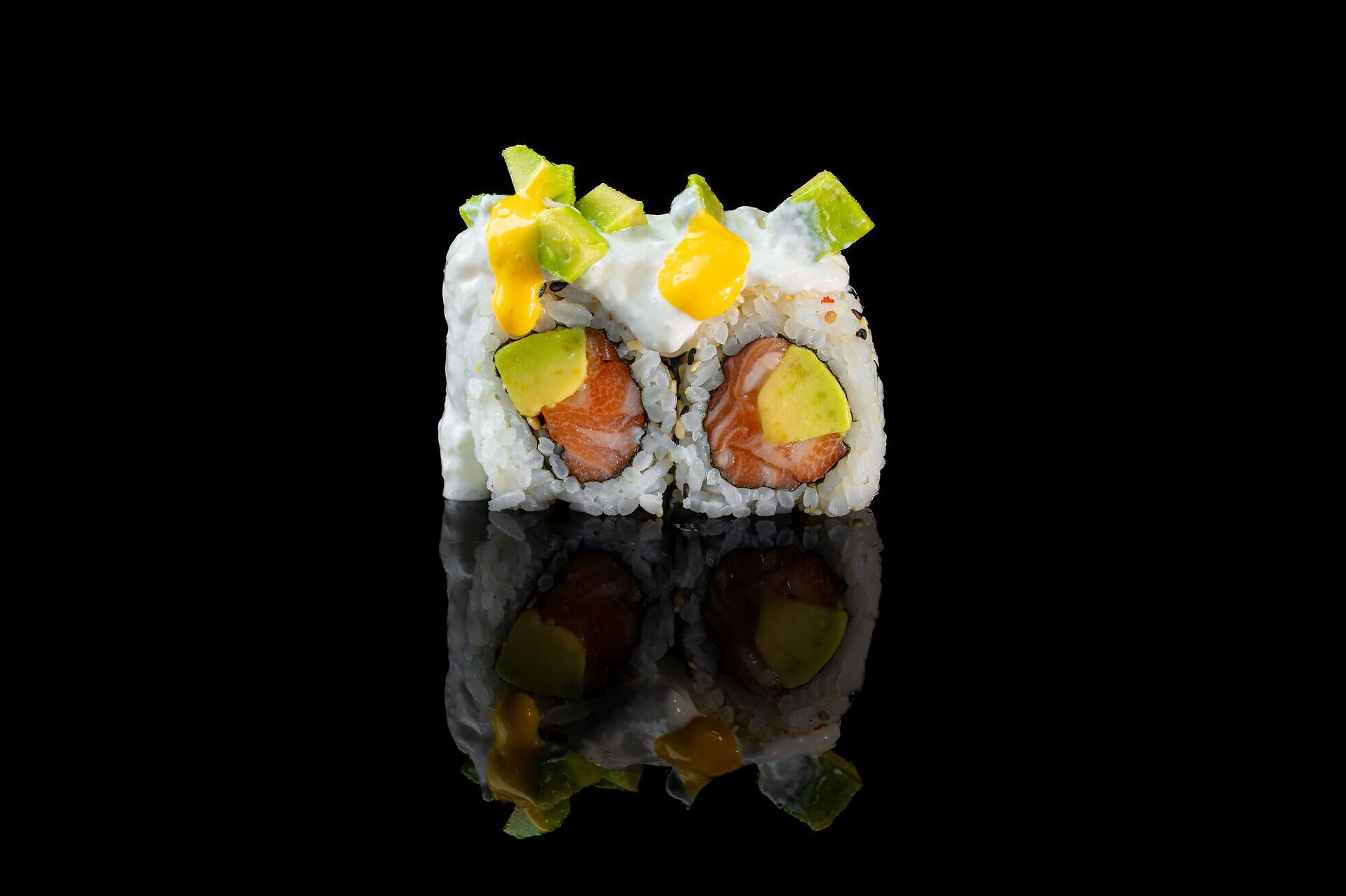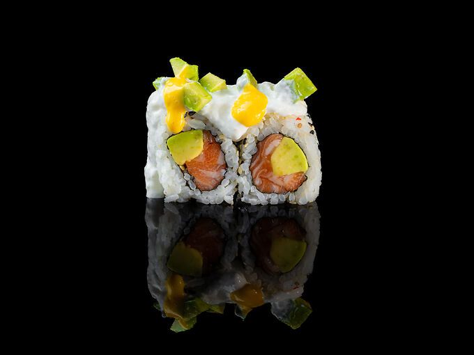 Salmone, avocado, stracciatella e salsa mango