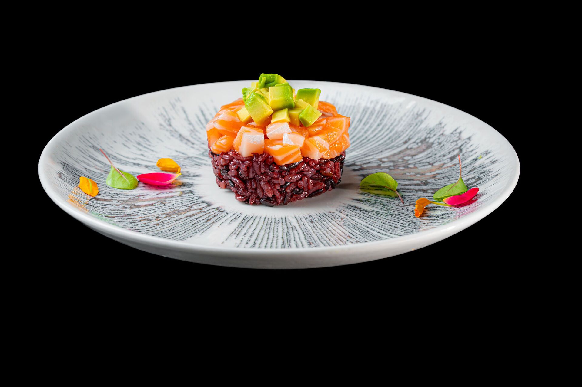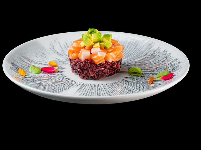 Tartar di salmone su riso nero e avocado